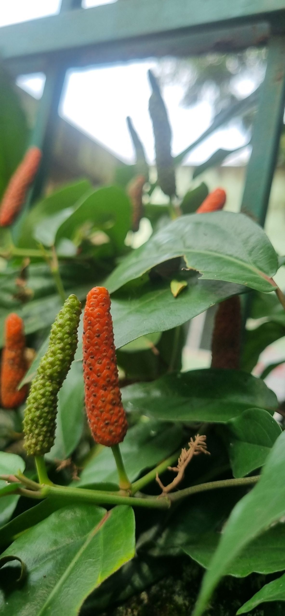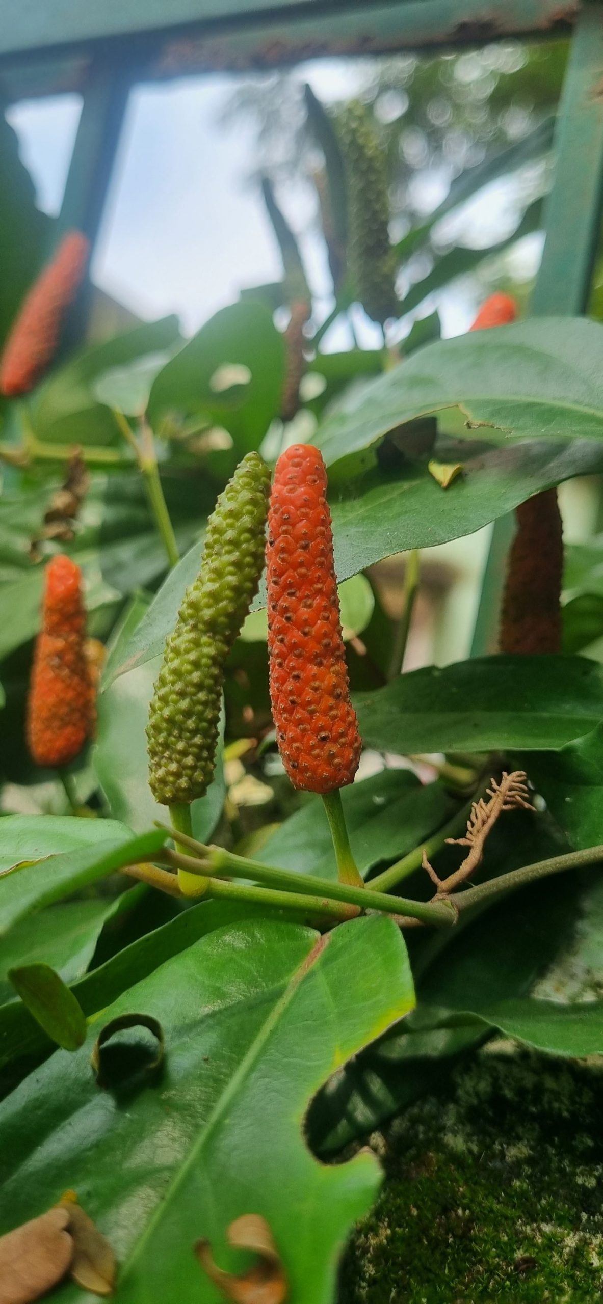 Piper retrofractum Vahl, Enum. Pl. 1: 314 1804. (syn. Chavica celtidiformis Miq.; Chavica hainana C.DC.; Chavica labillardieri Miq.; Chavica maritima Miq.; Chavica officinarum Miq.; Chavica parvifolia Hassk.; Chavica peepuloides Wight; Chavica retrofracta Miq.; Cubeba chaba Miq.; Piper arnottianum C.DC.; Piper callosum Opiz; Piper chaba Hunter; Piper longum Bl.; Piper maritimum Blume ex C.DC.; Piper officinarum (Miq.) C. DC.; Piper palawanum C.DC.; Piper parvifolium Blanco; Steffensia carpunya Kunth); . Native to: Bangladesh, Cambodia, China South-Central, Laos, Lesser Sunda Is., Malaya, Philippines, Thailand, Vietnam; Introduced into: East Himalaya, Leeward Is., Windward Is. as per POWO; . Long Pepper, Balinese Pepper, Javanese long pepper; . Piperaceae, Lauraceae and Thymelaeaceae SN 08 : 3 posts by 3 authors. Attachments (1). .. Is this called ‘gaja hippali‘ in Kannada ? .
