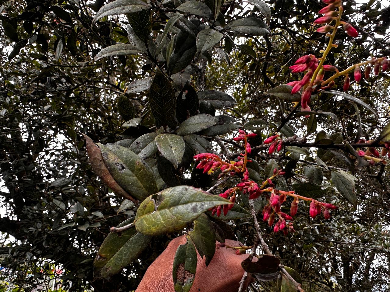 Vaccinium symplocifolium (D.Don ex G.Don) Alston, Handb. Fl. Ceylon 6(Suppl.): 176 (1931) (syn: Agapetes arborea Dunal ; Agapetes salicifolia Gardner ex Thwaites ; Agapetes symplocifolia D.Don ex G.Don; Andromeda symplocifolia Wall. ; Epigynium leschenaultii (Wight) Klotzsch ; Epigynium rotundifolium (Wight) Walp. ; Vaccinium arboreum Lesch. ex Dunal ; Vaccinium leschenaultii Wight ; Vaccinium leschenaultii var. pubescens S.M.Rajendran, S.C.Agarwal & H.N.Verma ; Vaccinium leschenaultii var. rotundifolium (Wight) C.B.Clarke ; Vaccinium leschenaultii var. zeylanicum C.B.Clarke ; Vaccinium rotundifolium Wight ); . SW. India, Sri Lanka as per POWO; . Common name: Indian Cranberry, Lingon berry, Cowberry • Kannada: Anduvan • Malayalam: Kelamaram, Katavu, Kalavu • Sinhala: Boralu • Tamil: Anduvan, Kalavu . Habit- Small trees up to 7 m tall. Trunk\bark- Bark brownish, irregularly scaly; blaze yellowish. Branchlets- Young branchlets angular to subterete, pubescent. Leaves- Leaves simple, alternate, spiral; petiole 0.5-1 cm long, planoconvex in cross section, pubescent when young; lamina 4.5-6.5 x 2.5-3 cm, ovate, elliptic or elliptic-obovate, sometimes suborbicular, apex acute or acuminate, base attenuate to acute or obtuse, margin serrate, glabrous, coriaceous, glands on the midrib beneath; midrib slightly raised or flat above; secondary nerves 4-6 pairs; tertiary nerves broadly reticulate, not prominent. Flowers- Inflorescence axillary and terminal, racemose; flowers urceolate, pink or rarely whitish; petals glabrous; stamens with awns; pedicel ca. 0.3 cm long. Fruit& seed- Berry, smooth, globose; seeds many. In high elevation evergreen forests between 1600 and 2000 m. India, Myanmar and Sri Lanka; in the Western Ghats- South Sahyadri. Vaccinium leschenaultii Wight ::: Vacciniaceae : Attachments (6). 3 posts by 2 authors. Name: Vaccinium leschenaultii Wight Family: Vacciniaceae Date: 06 July 2013 Place: Doddabetta, Nilgiris, TN Alt.: 2500 m asl Is my ID right? I do not know which variety it is Viburnum erubescens Wall SN Mar 12 Solenotinus erubescens (Wall.) Oerst. : 4 posts by 3 authors. Attachments(2). Viburnum erubescens Wall, (= Solenotinus erubescens (Wall.) Oerst.), Fam: Adoxaceae (= caprifoliaceae), small tree ooty area at the altitude of 1800m, wild. I think this is Vaccinium leschenaultii Yes, I agree with …, It is Vaccinium leschenaultii Wt. only . ![]() ID KK 26: (Mixed thread): 1 correct image as above. Please identify this shrub from Kodaikanal in Tamilnadu 30/10/25 Vaccinium symplocifolium (Wall. ex G.Don) Alston Reference: POWO